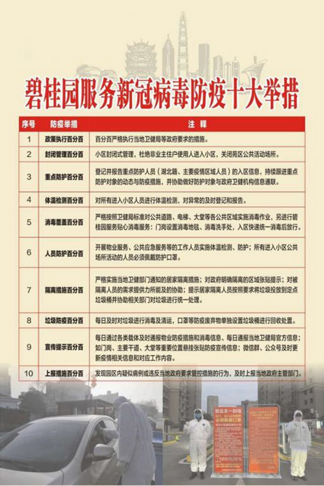 首先,在管理方面,碧桂园服务进行了抗疫模式的创新,据悉,本次疫情期间,碧桂园服务提出了“10+N防疫模式”,即“10大社区防疫标准措施+N项创新特色防疫措施”。